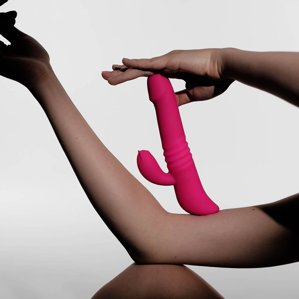 Rabbit is a dual motor vibrator that offers both internal and external stimulation. While your clitoris gets some love, the thrusting vibrator will give your g-spot the attention it needs. Rabbit is made with body-safe silky silicone to ensure comfort and flexibility. Although Rabbit, like all vibrators, are usually used on people with vulvas, anyone and everyone can use it. When used during penetration, the vibrator's gentle curves can be easily adjusted and molded to fit your shape. It feels great on the skin and works with water-based lubricants. Plus, it's waterproof for easy cleaning and shower use! A quick 270-minute charge gives you up to 90 minutes of playtime, providing reliable and rechargeable pleasure wherever you are.