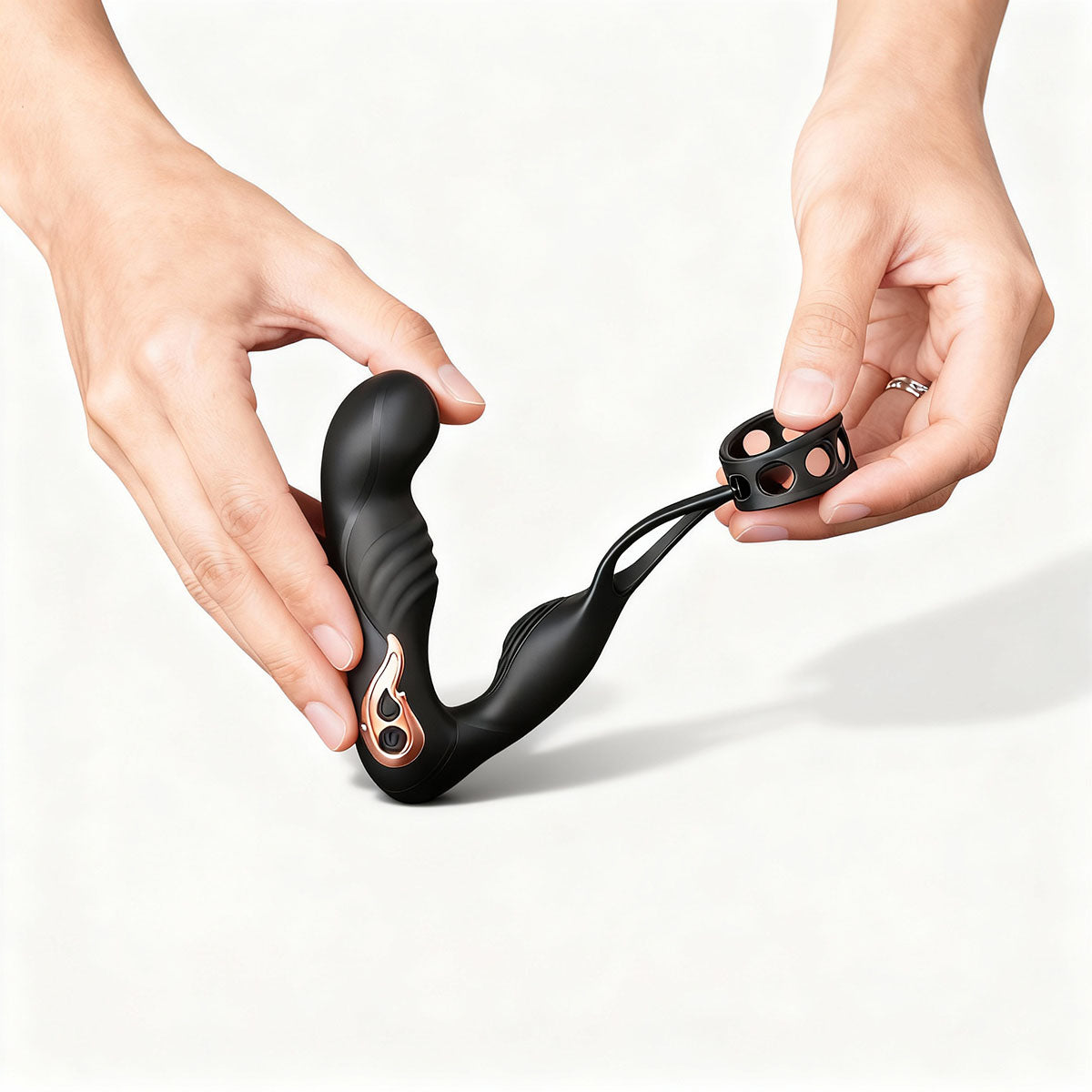 • Dual-function prostate massager + cock ring